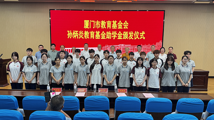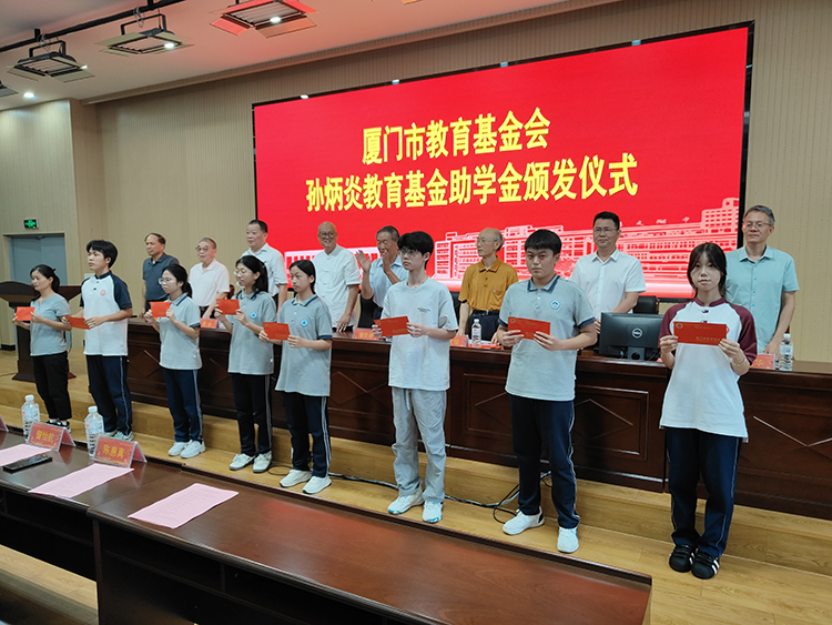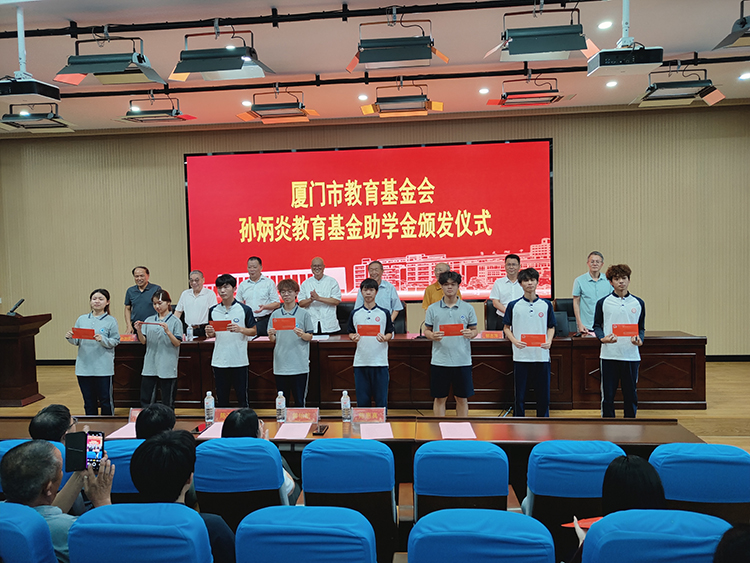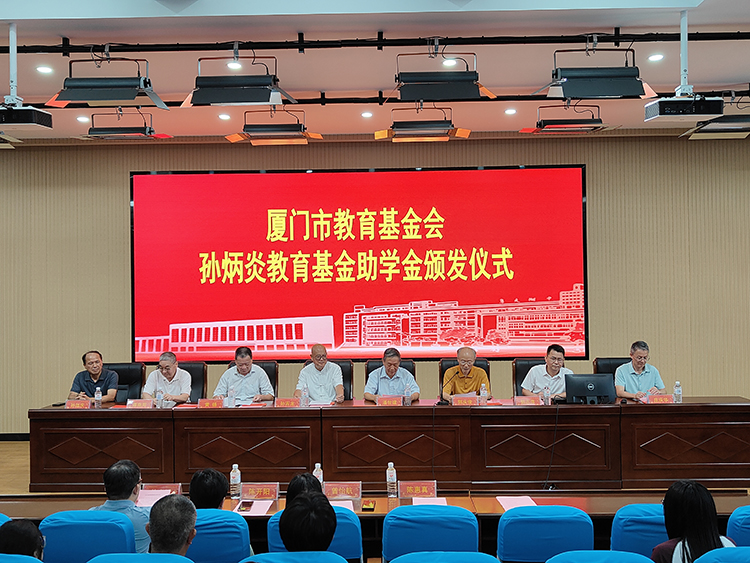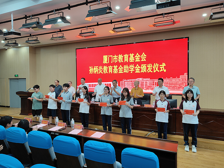 廈門市教育基金會法人潘世建講話,他深深感恩陳嘉庚及孫炳炎先生的愛國教育情操,寄語受助學生“夢在前面,路在腳下,鍥爾不舍,馳而不息”,希望大家能朝前看,努力成為社會的棟梁。